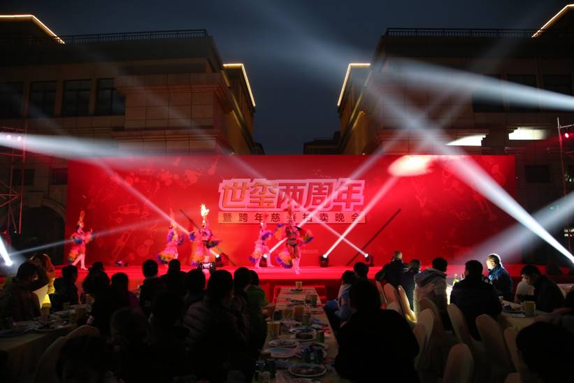 2014年12月31日“世玺二周年慈善拍卖晚会”在新繁世玺一期临街商铺正式拉开了帷幕,现场气氛嗨翻天,近千人参与到这场盛宴。扬世玺之魅力,当晚热闹的篝火、绚丽的烟花、劲歌辣舞、丰盛的美食……本次晚会不仅有自助烤全羊、篝火舞蹈等精彩环节,更有四川省艺术大师张大师亲临现场,为来宾现场题字,耀眼全城。此外,现场还不时随机抽取幸运新年礼物,激动人心的抽奖环节。成都灵峰公关全程晚宴演绎!